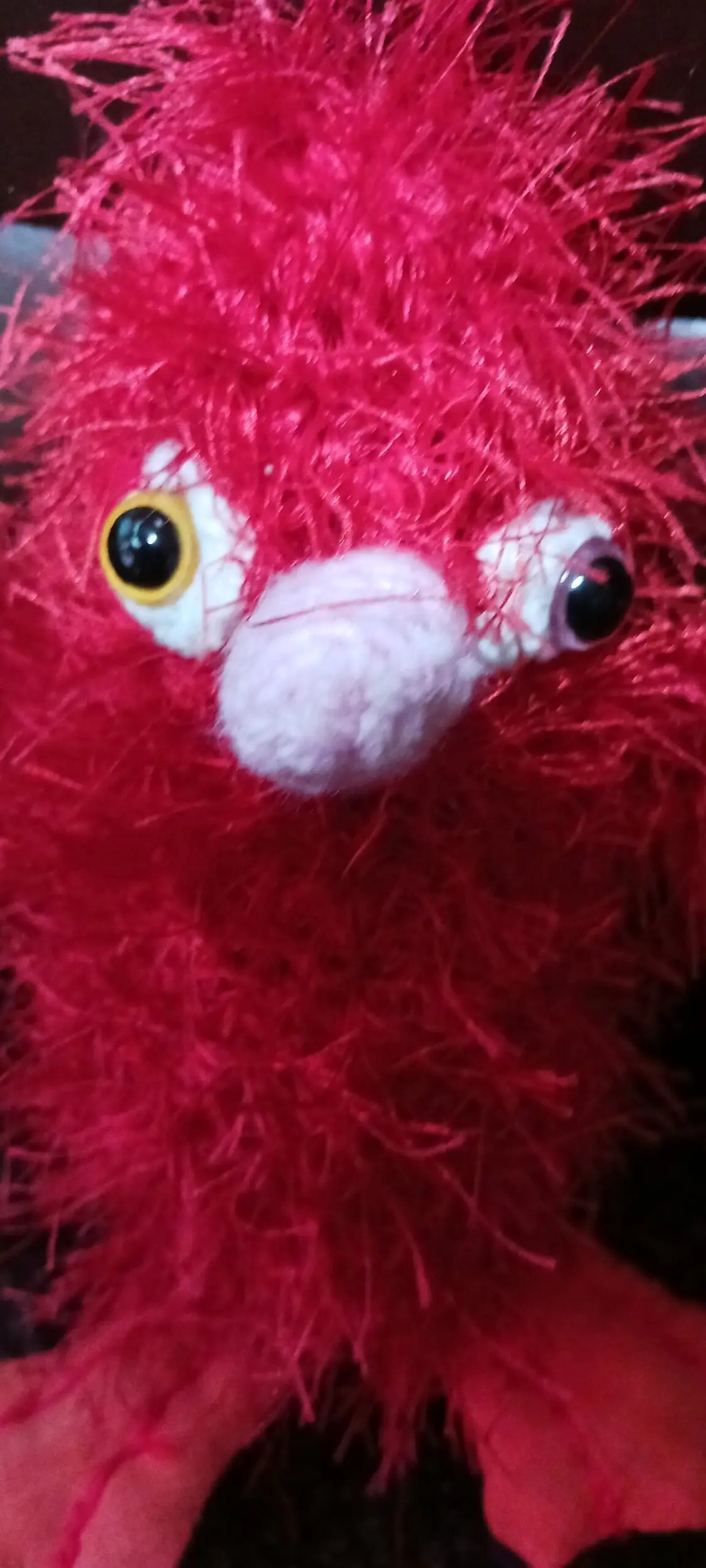 Fluffy Red Bird. Parrot. Crochet. Handmade. Colorful. Stuffed toy